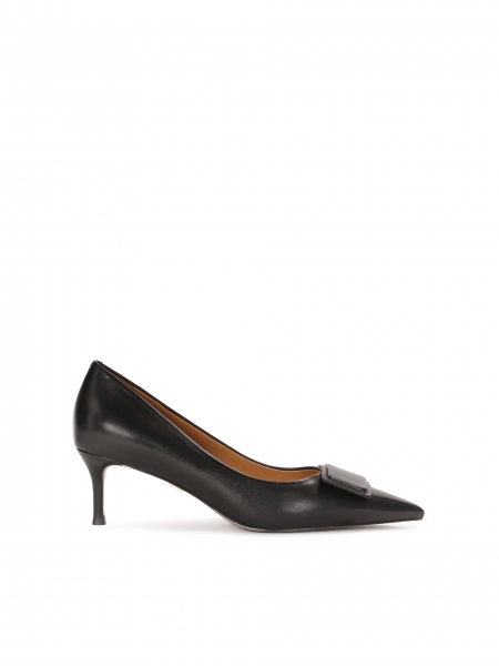 Lapochette nera da donna in materiale similpelle di alta qualità colpisce per la sua forma versatile. La pochette si adatta perfettamente a un abito da sera.