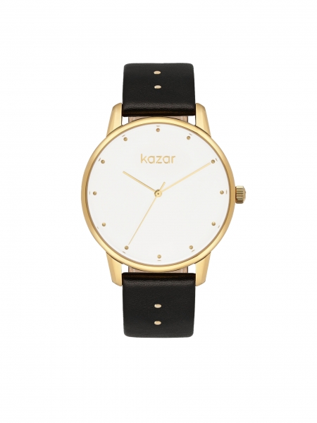 - Il taglio semplice è arricchito da dettagli alla moda sotto forma di cerniere dorate, rifinite con una catena decorativa e il logo Kazar.