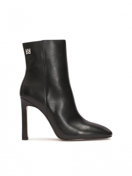 Cintura da donna nera in pelle fiore di alta qualità, che cattura l'attenzione grazie all'uso di una catena color oro lucido attaccata a due passanti in metallo con un dettaglio decorativo sotto forma di monogramma KAZAR. La cintura stretta aggiungerà un tocco chic non solo agli abiti occasionali, ma anche a quelli meno formali e casual.