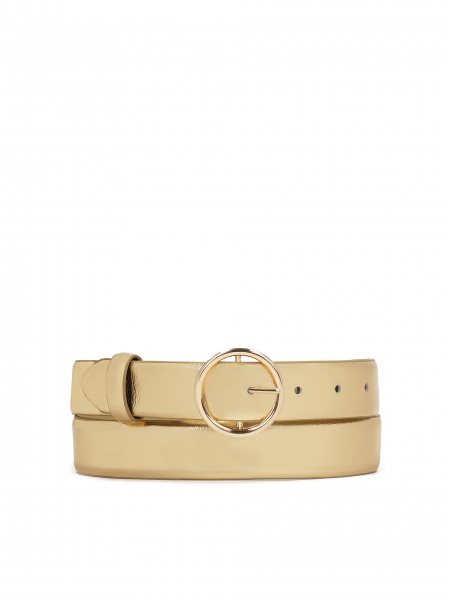 I sandali dorati dal design elegante e sofisticato sono realizzati in pelle naturale di prima qualità, che garantisce un aspetto lussuoso e un comfort eccezionale. Hanno una suola piatta e confortevole, ideale per le lunghe passeggiate, che sottolinea in modo sottile il loro carattere casual-elegante. La chiusura con fibbia sul tallone aggiunge un tocco finale classico ai sandali, consentendo una perfetta aderenza al piede. L'elemento più accattivante, tuttavia, è la tomaia finemente tagliata, che crea l'effetto di delicati motivi traforati che espongono sottilmente il piede, conferendo all'intero stile leggerezza e femminilità.